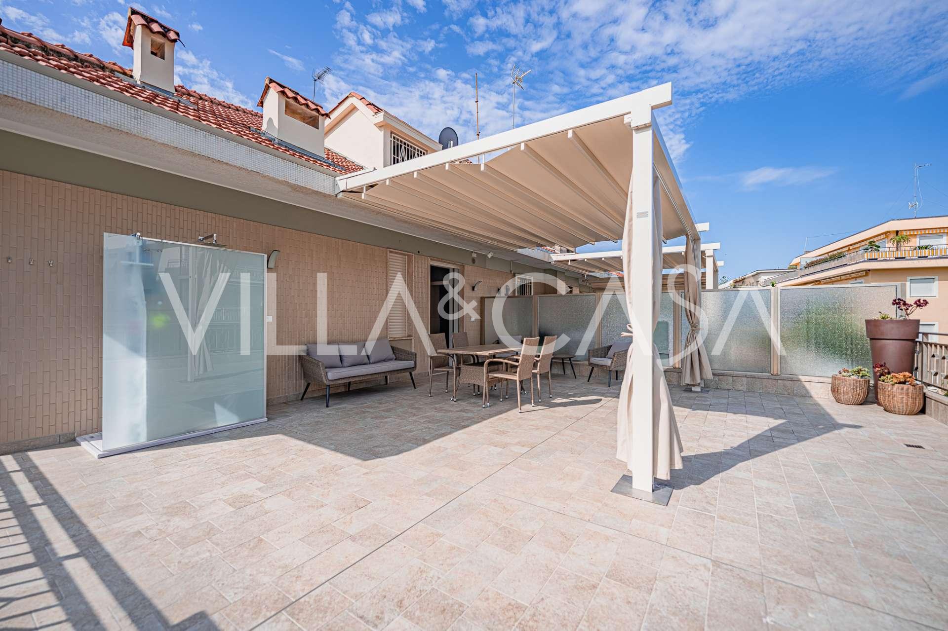 היתרון המרכזי — טרסה מרשימה בגודל 80 מ"ר עם אזור מנוחה ומקלחת פרטית, המושלמת למנוחה באוויר הפתוח. טרסה שנייה בגודל כ-15 מ"ר מציעה נוף לים ולכנסייה האורתודוקסית הרוסית.