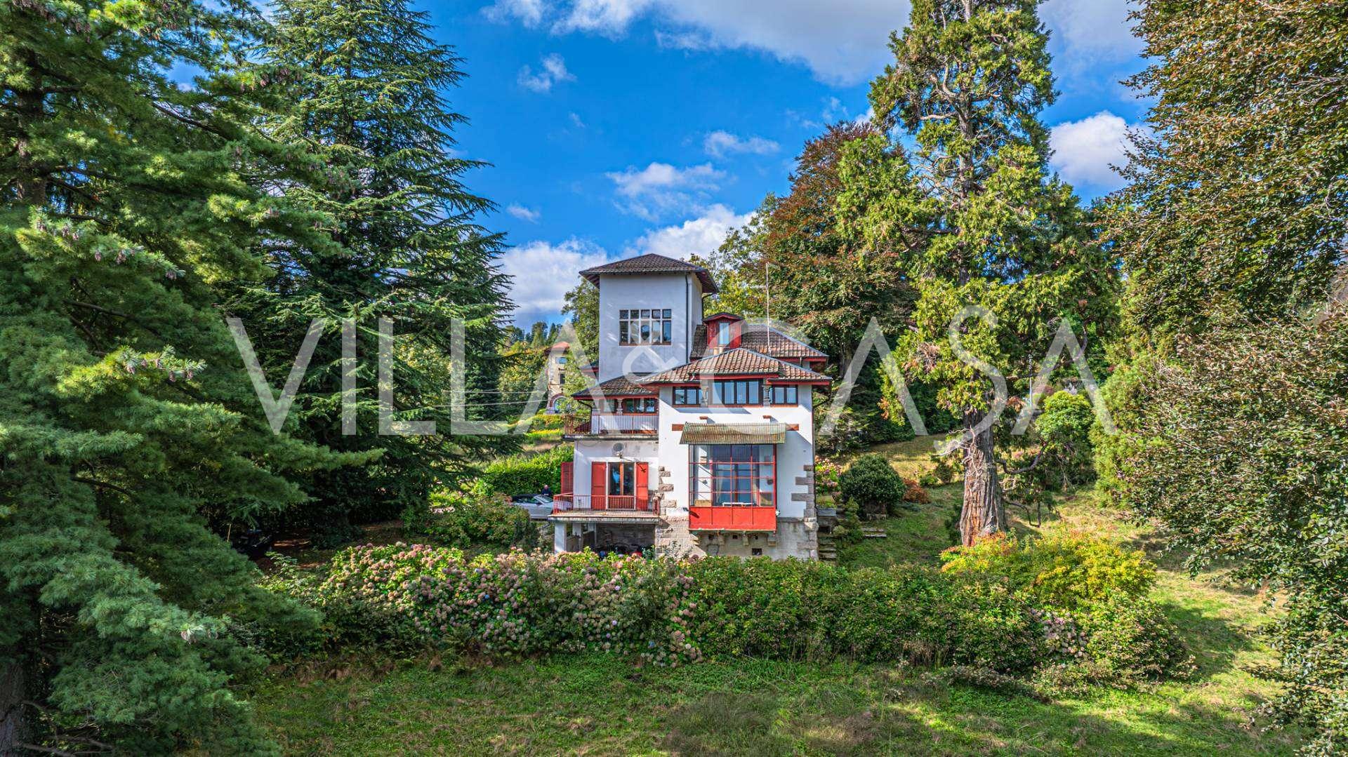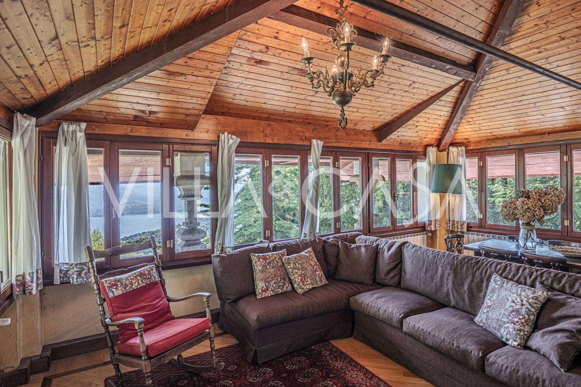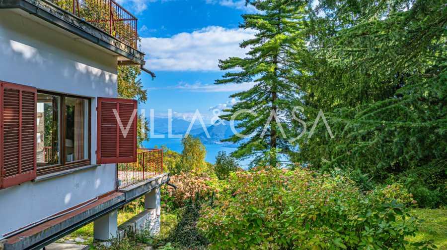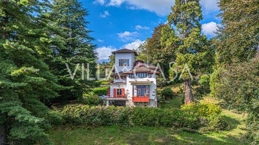 Su un parco curato di circa 6000 m², che digrada dolcemente verso l'acqua, si erge una villa elegante, circondata da alberi secolari come maestose sequoie, cedri del Libano e una ricca collezione di azalee, rododendri e ortensie. La proprietà comprende la casa principale e un affascinante guest house (dependance) in stile chalet alpino.