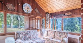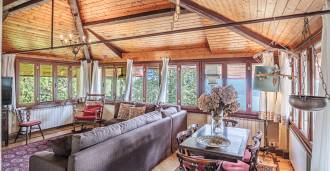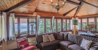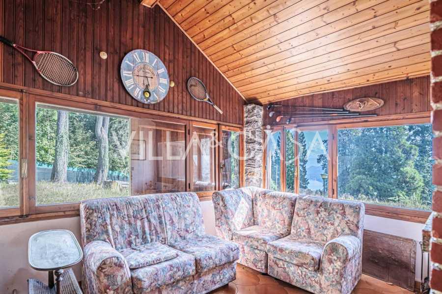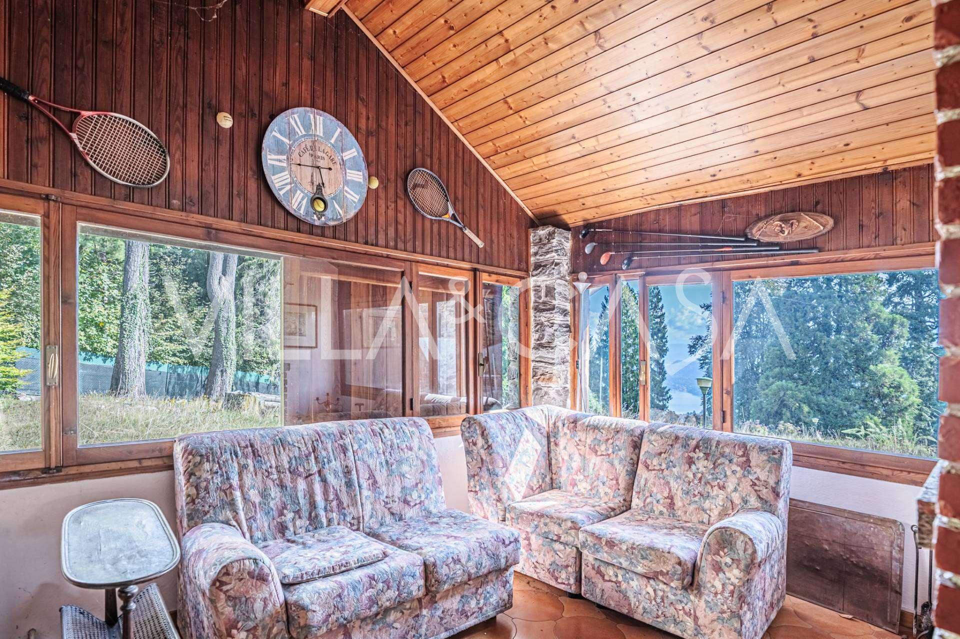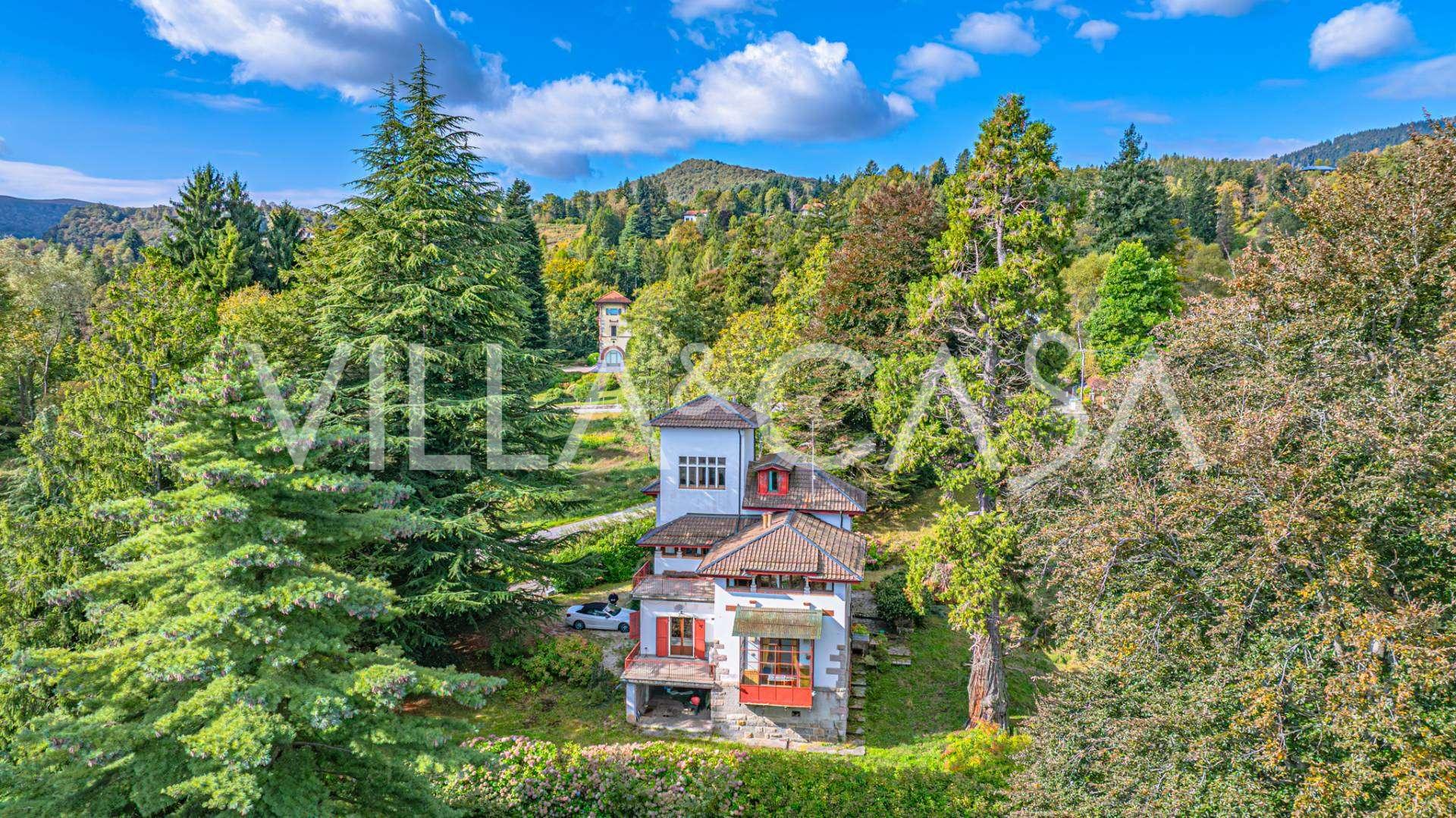 Su un parco curato di circa 6000 m², che digrada dolcemente verso l'acqua, si erge una villa elegante, circondata da alberi secolari come maestose sequoie, cedri del Libano e una ricca collezione di azalee, rododendri e ortensie. La proprietà comprende la casa principale e un affascinante guest house (dependance) in stile chalet alpino.