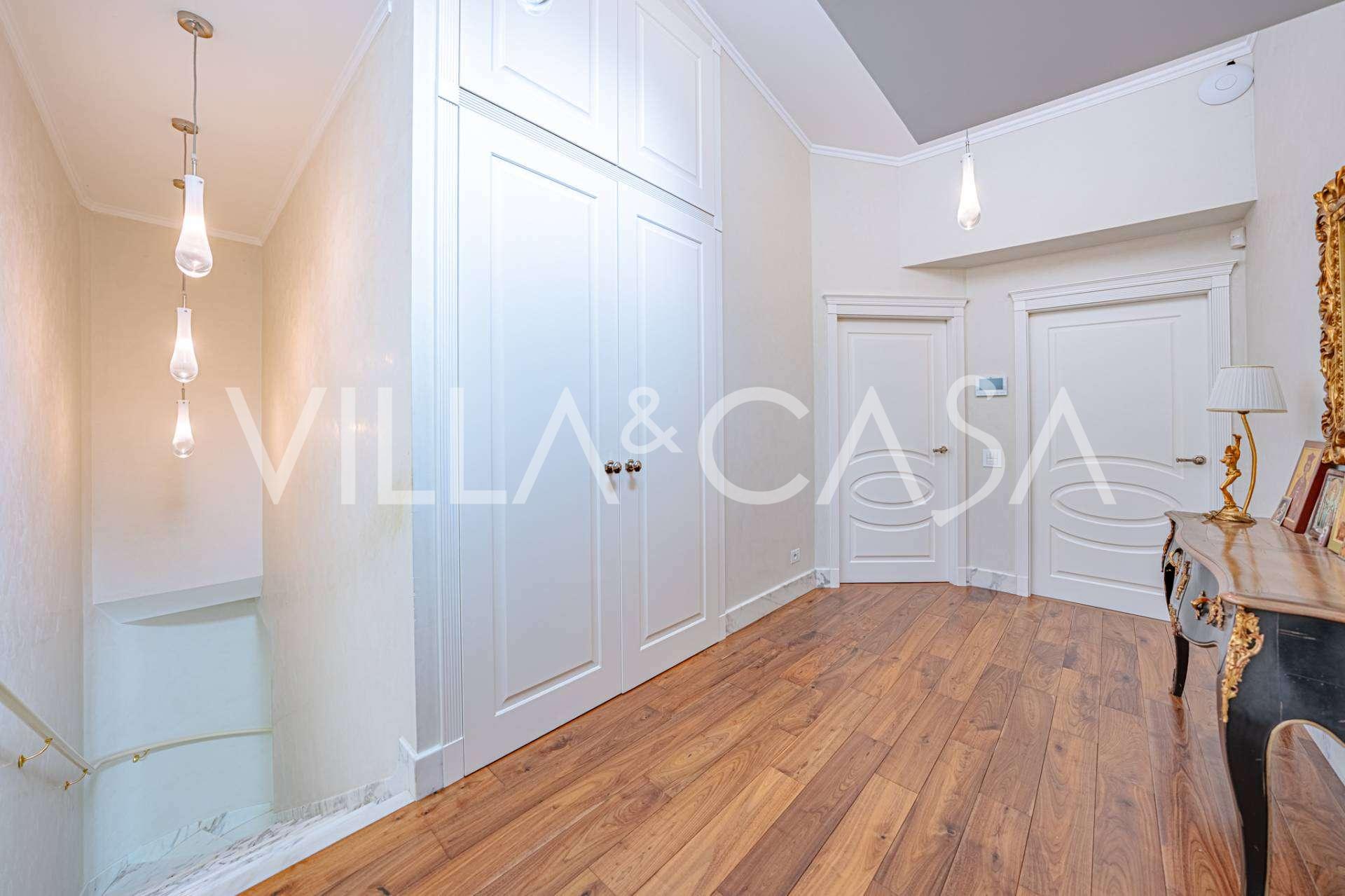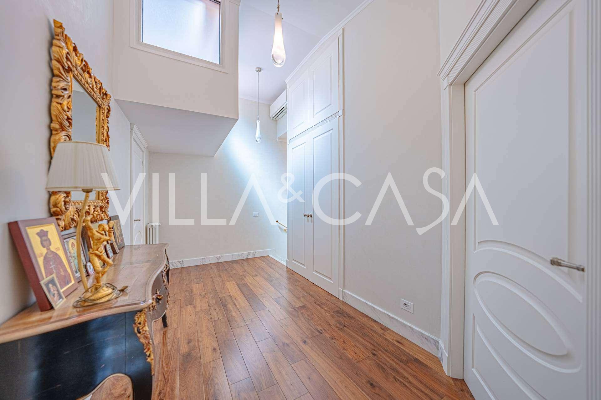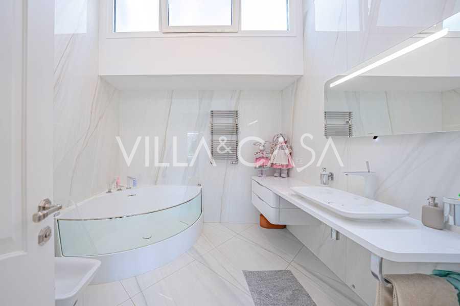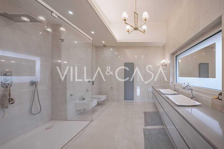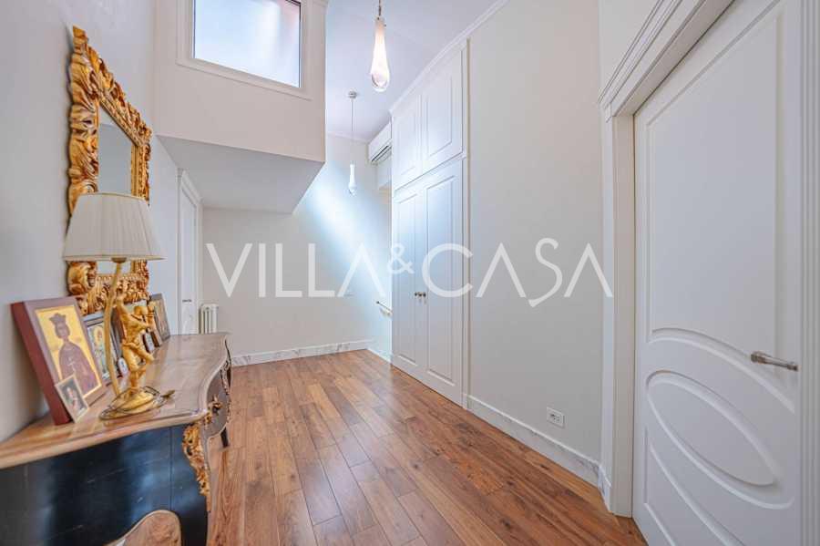 הפנים ברמה הגבוהה ביותר כוללים רק את החומרים הטובים ביותר: גרניט פורצלן פרימיום בסלונים ובחדרי הרחצה, פרקט מעץ רחב באזור המנוחה, מדרגות שיש, חלונות Schüco עם זכוכית עמידה בפני פגיעות. הרהיטים המובנים, המיוצרים בהתאמה אישית, הם יצירת מופת של אומנות נגרות איטלקית. מערכות ההנדסה המודרניות מבטיחות יעילות אנרגטית גבוהה בדרגה A.