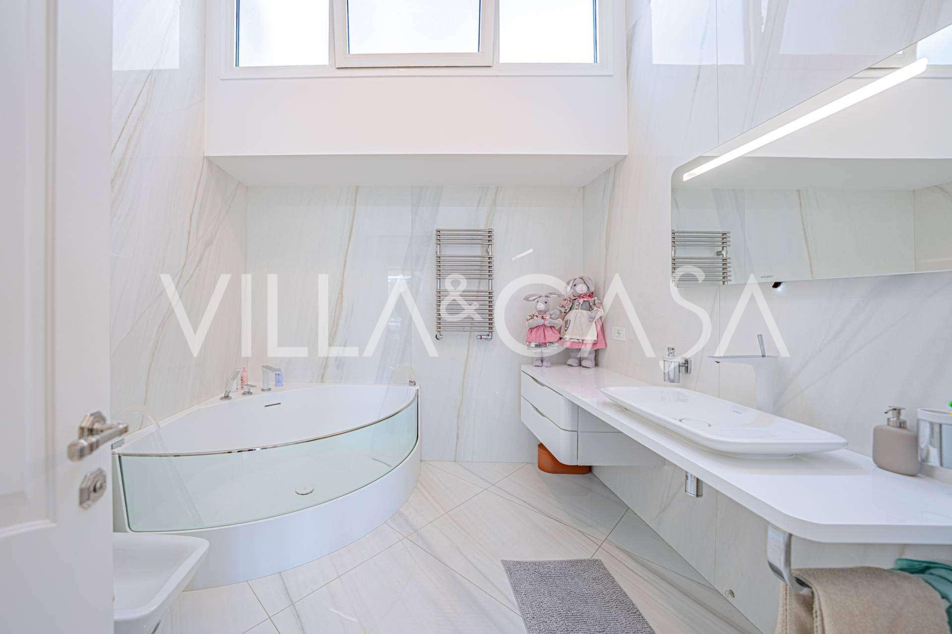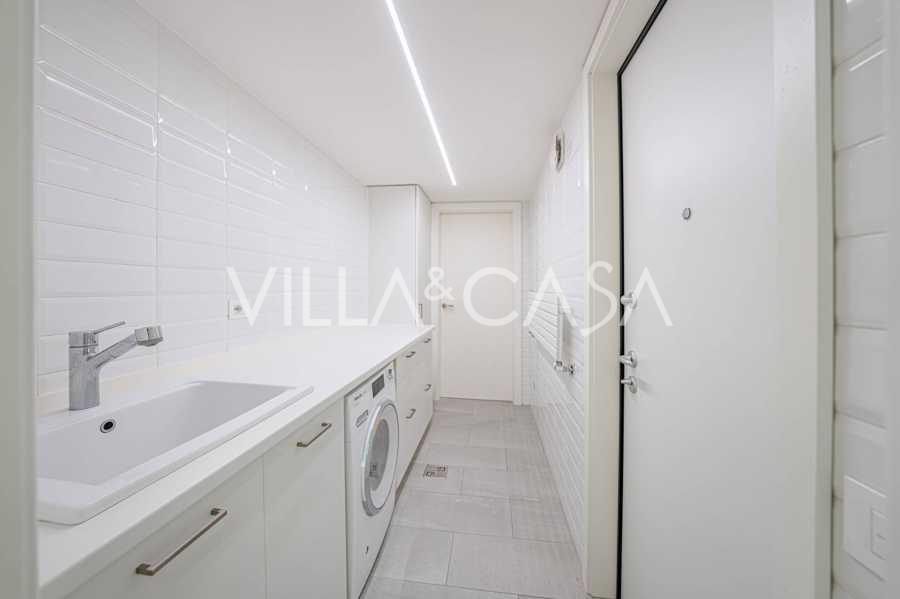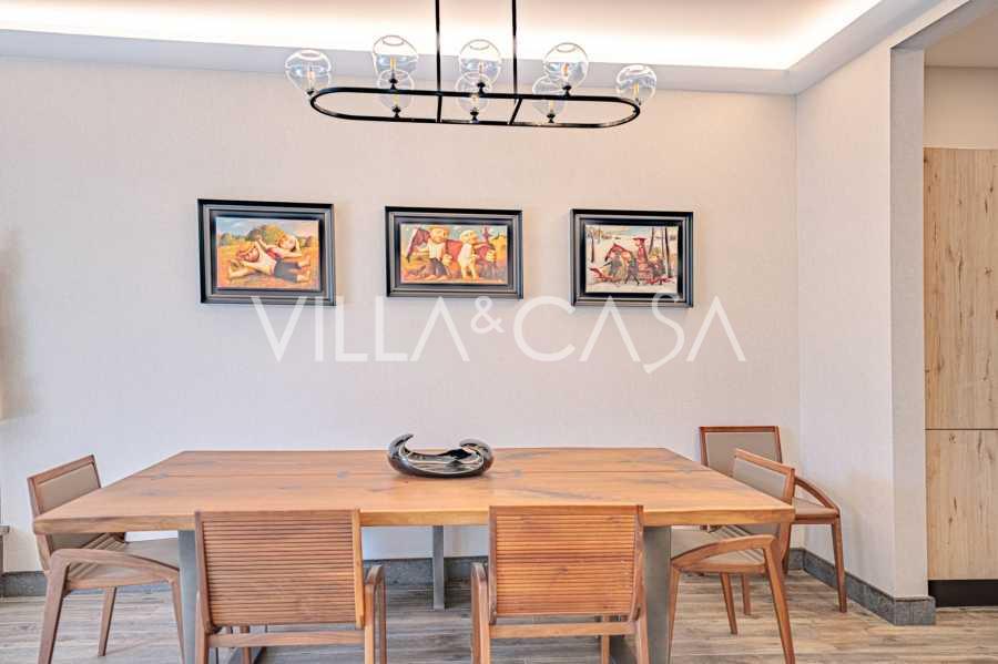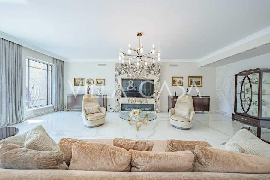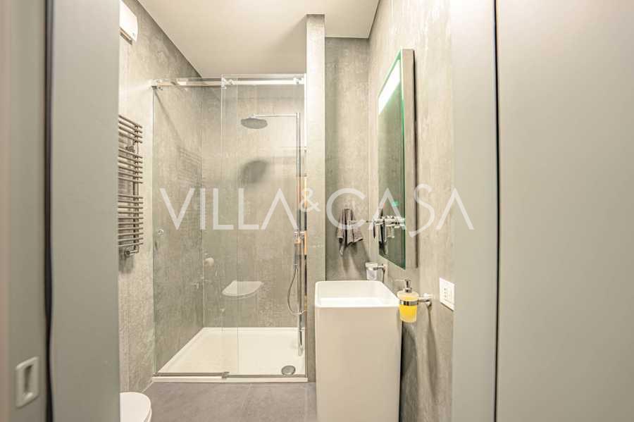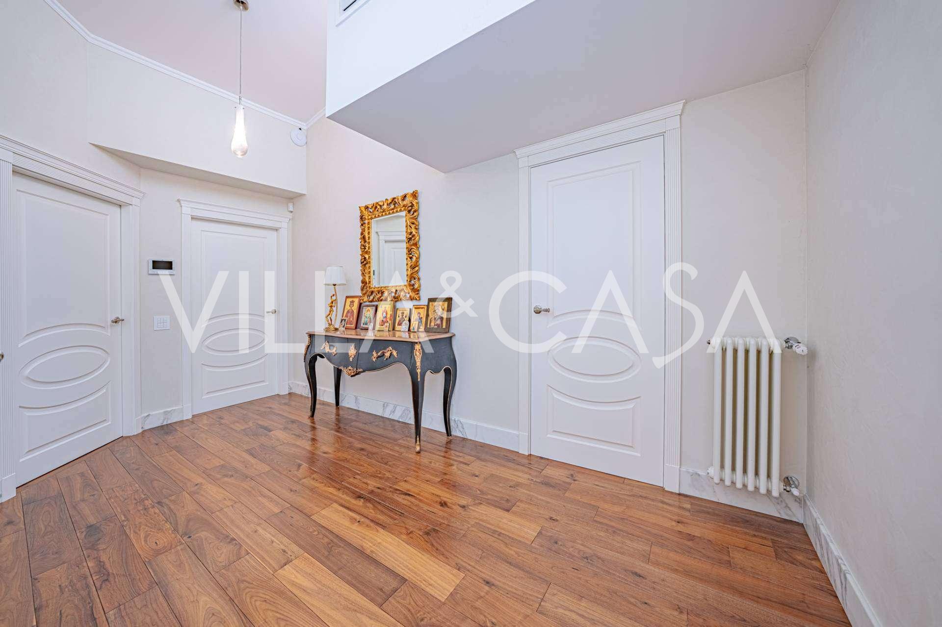 הפנים ברמה הגבוהה ביותר כוללים רק את החומרים הטובים ביותר: גרניט פורצלן פרימיום בסלונים ובחדרי הרחצה, פרקט מעץ רחב באזור המנוחה, מדרגות שיש, חלונות Schüco עם זכוכית עמידה בפני פגיעות. הרהיטים המובנים, המיוצרים בהתאמה אישית, הם יצירת מופת של אומנות נגרות איטלקית. מערכות ההנדסה המודרניות מבטיחות יעילות אנרגטית גבוהה בדרגה A.