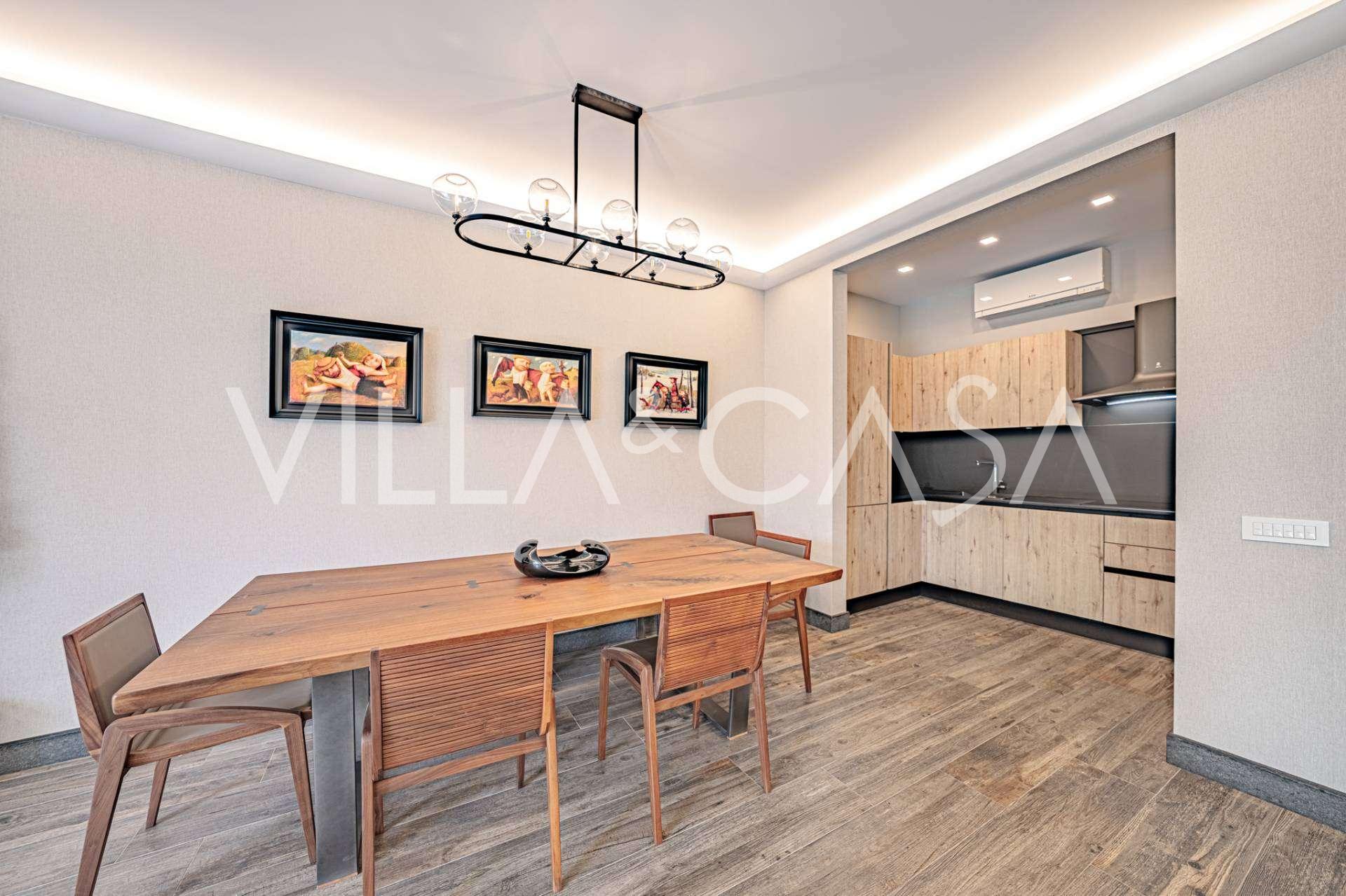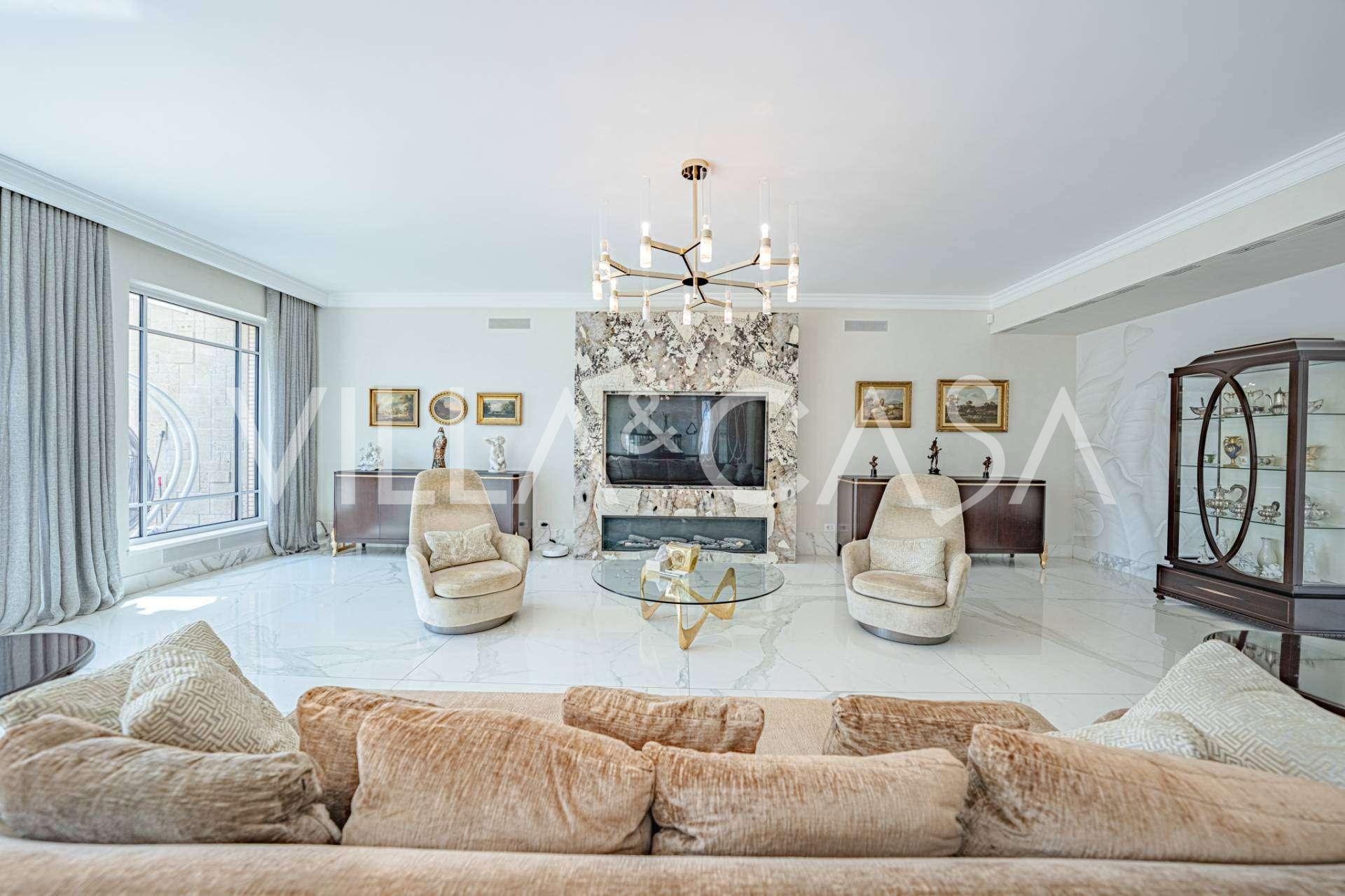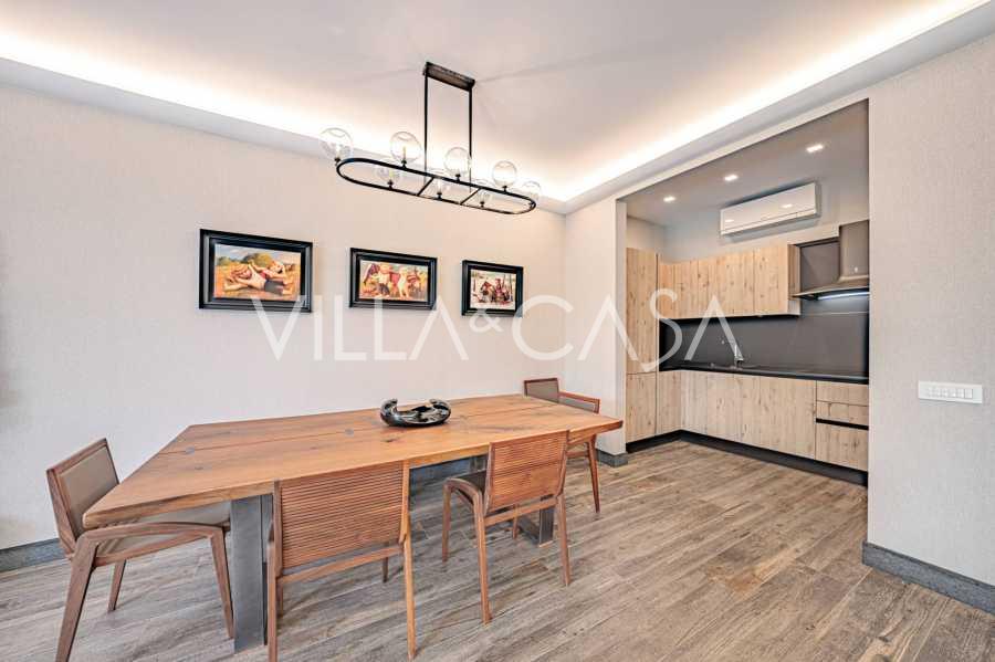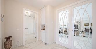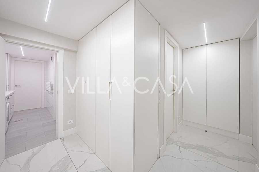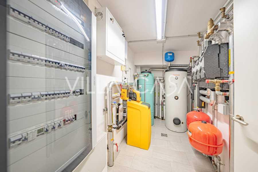 הפנים ברמה הגבוהה ביותר כוללים רק את החומרים הטובים ביותר: גרניט פורצלן פרימיום בסלונים ובחדרי הרחצה, פרקט מעץ רחב באזור המנוחה, מדרגות שיש, חלונות Schüco עם זכוכית עמידה בפני פגיעות. הרהיטים המובנים, המיוצרים בהתאמה אישית, הם יצירת מופת של אומנות נגרות איטלקית. מערכות ההנדסה המודרניות מבטיחות יעילות אנרגטית גבוהה בדרגה A.