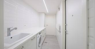 קומה ראשונה: לובי אלגנטי, סלון מרווח עם קמין ביולוגי מעוצב וחלונות פנורמיים המובילים למרפסת; מטבח אולטרה-מודרני עם מכשירי חשמל מהמותגים המובילים; אזור שירות נפרד (מכבסה, חדר טכני, מוסך מחומם עם גישה ישירה לבית); משרד פרטי עם מטבח וחדר רחצה משלו.