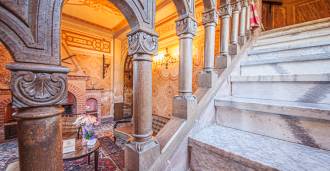 הפנים של הטירה מרשימים את האורחים באווירה של גדולה עתיקה: חדרים עם קמינים ופרסקאות, אולם עתיק עם ציורים ומדרגות אלגנטיות המובילות לקומה העליונה לדירות. בקומה הראשונה ממוקמים חדרי המגורים, משרד בבסיס המגדל, חדר אוכל, מטבח ושירותי אורחים, ומהטרסה נשקף נוף לגן.