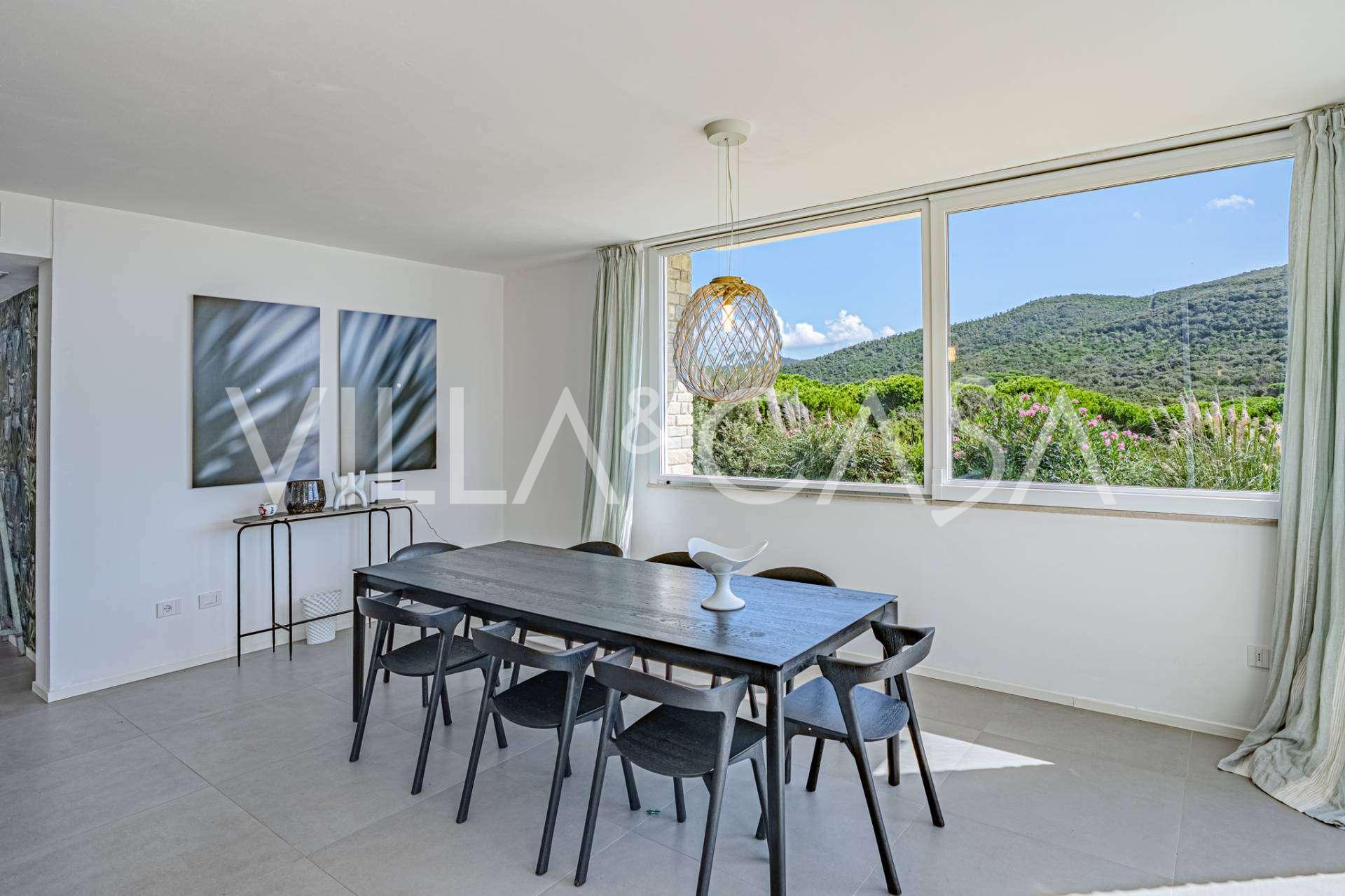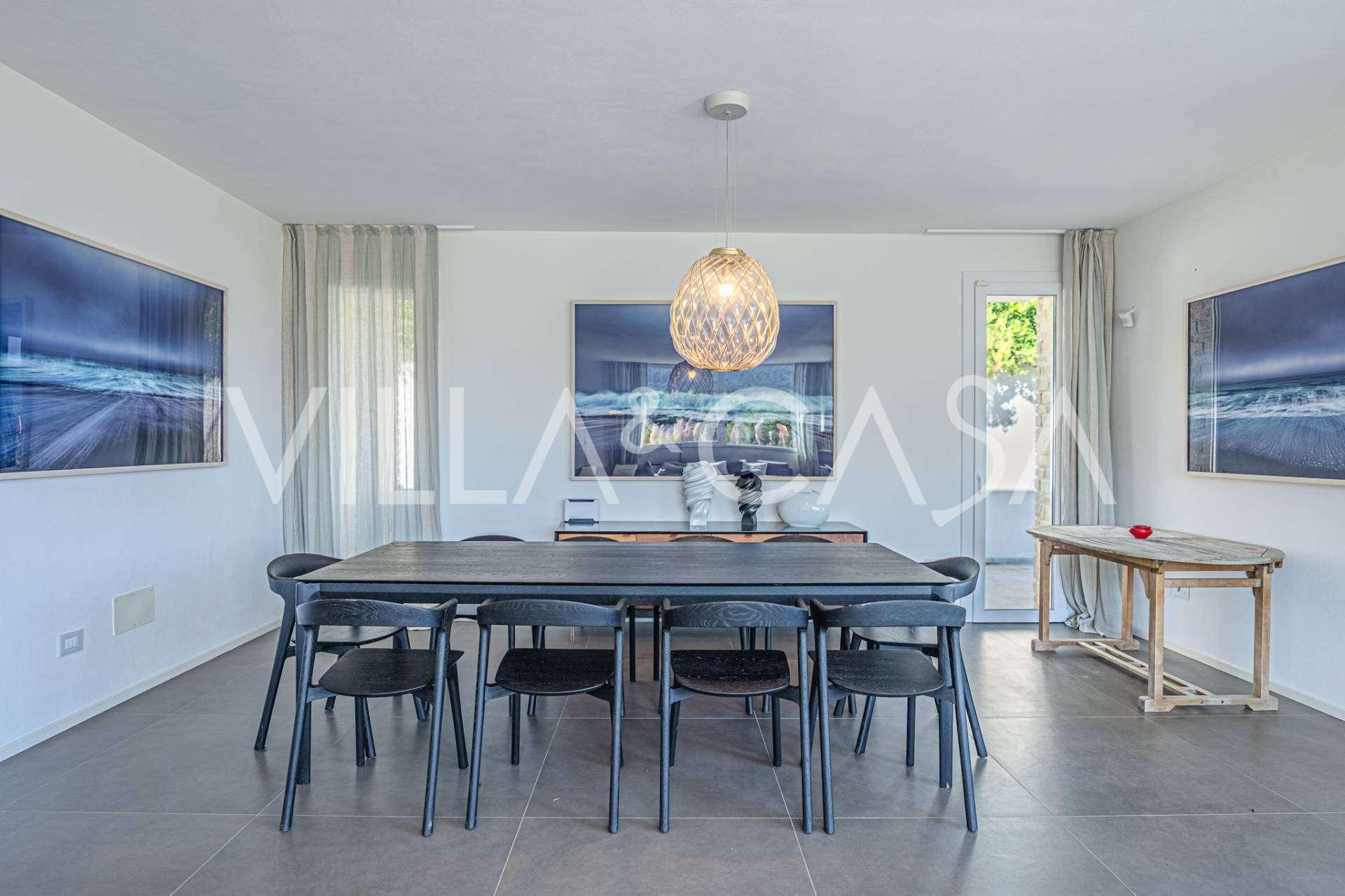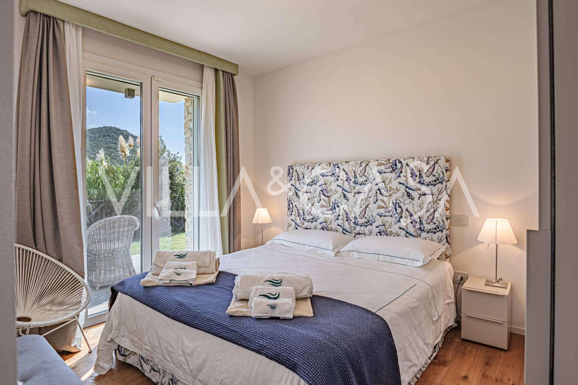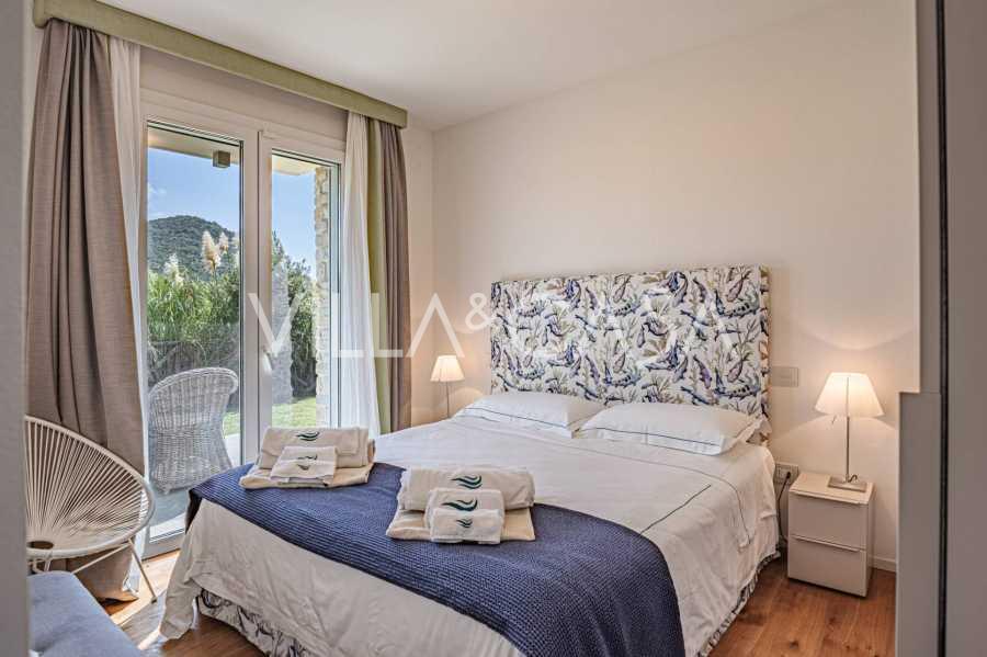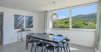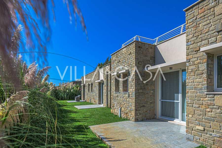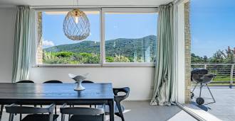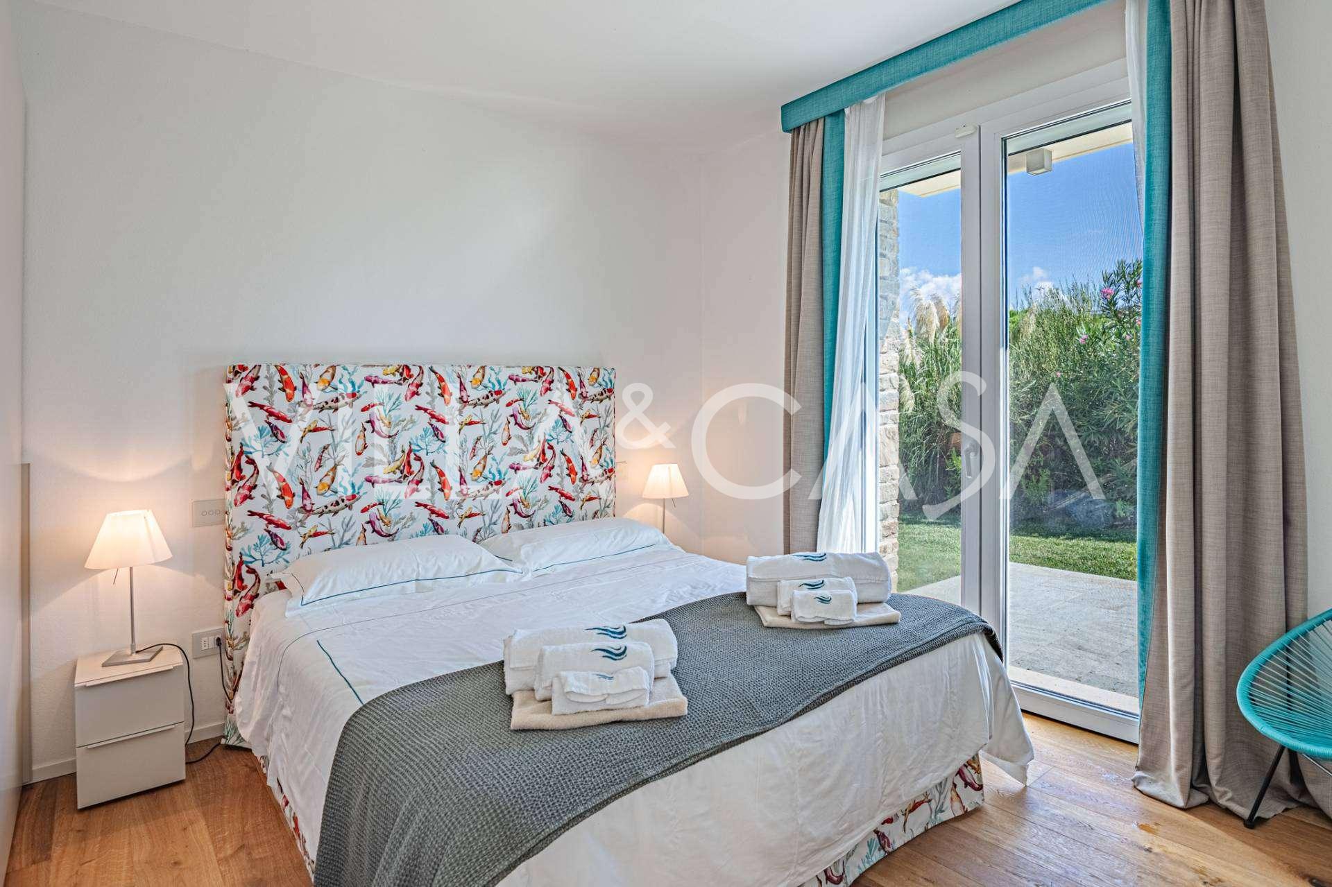 חזיתות האבן והטיח משתלבות בהרמוניה בנוף הים תיכוני. סלון מואר עם חלונות גדולים ותאורה טבעית זורם באופן חלק למטבח-חדר אוכל עם נוף לחצר הפנימית. אזור השינה כולל ארבעה חדרי שינה זוגיים וחדר שינה יחיד, כל אחד עם חדר רחצה פרטי.