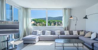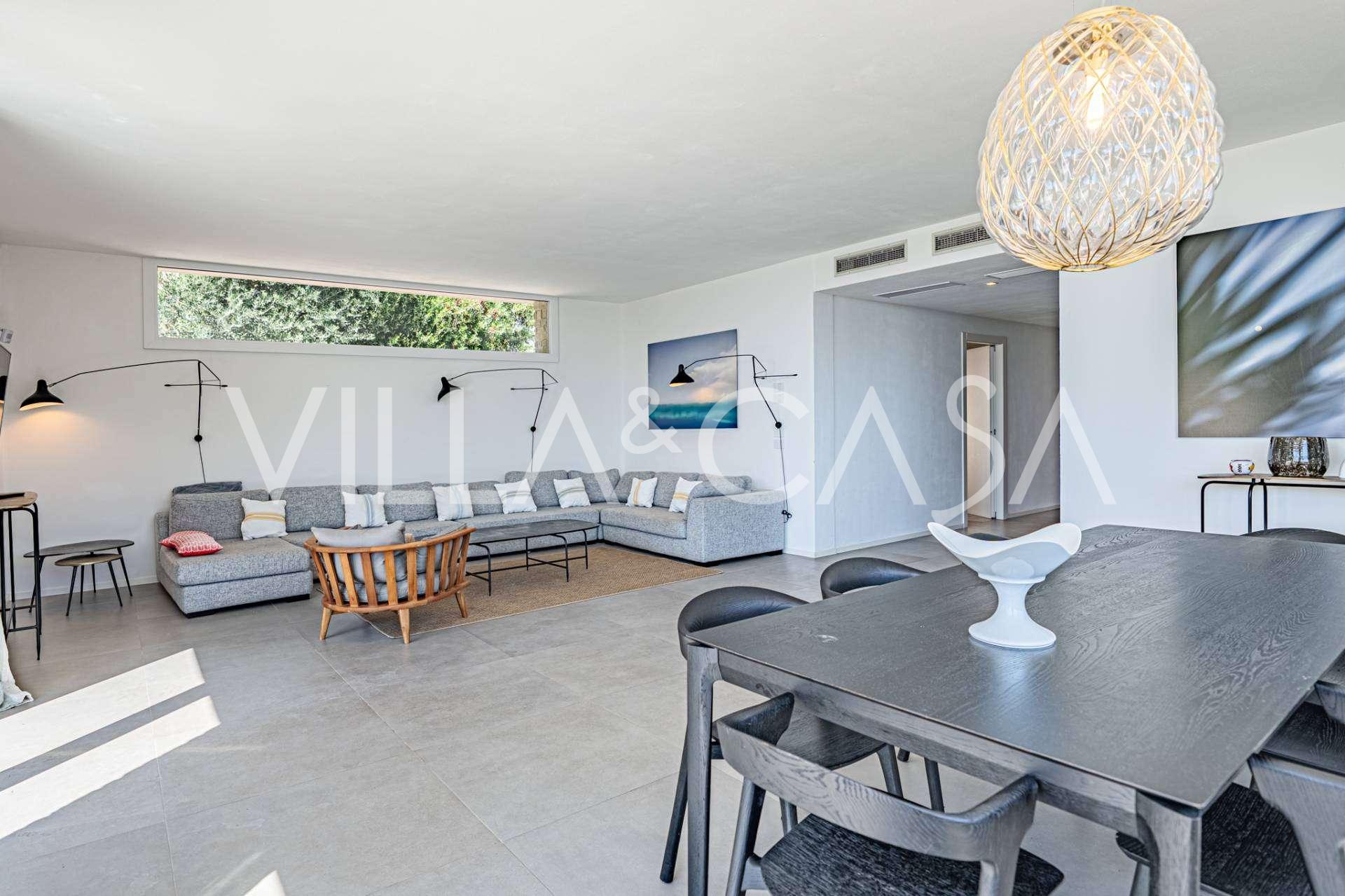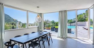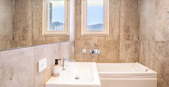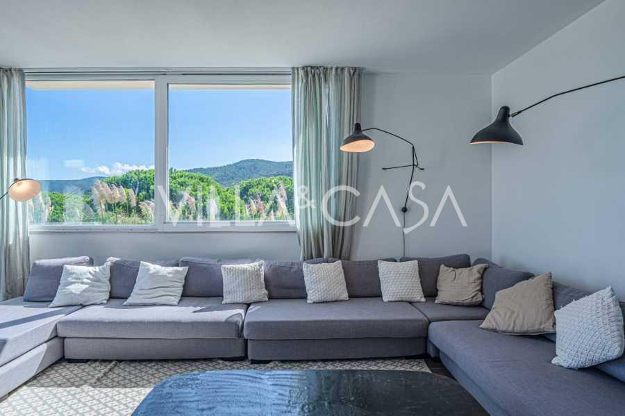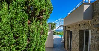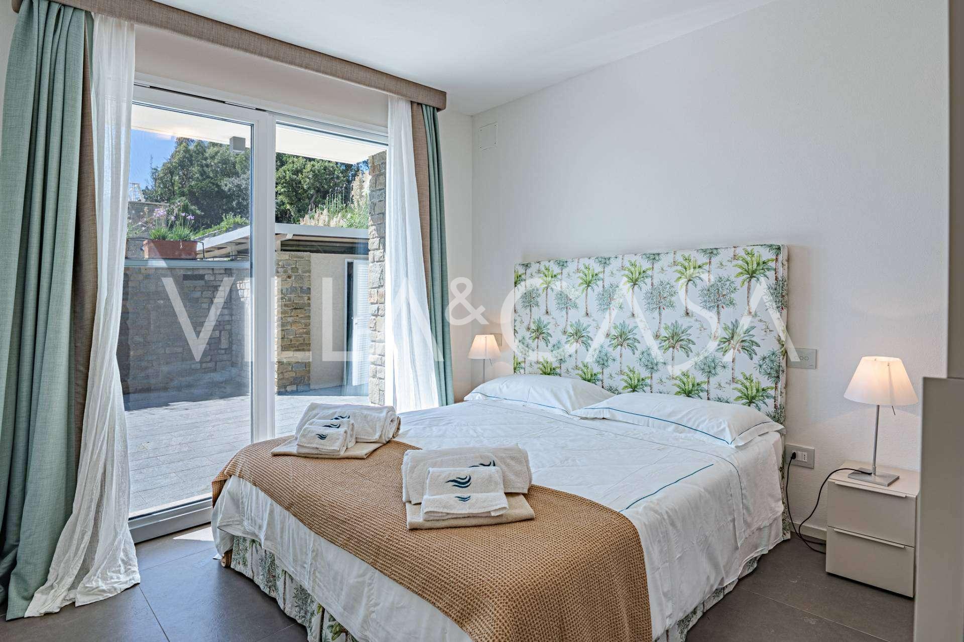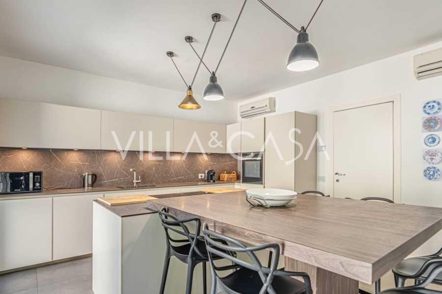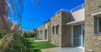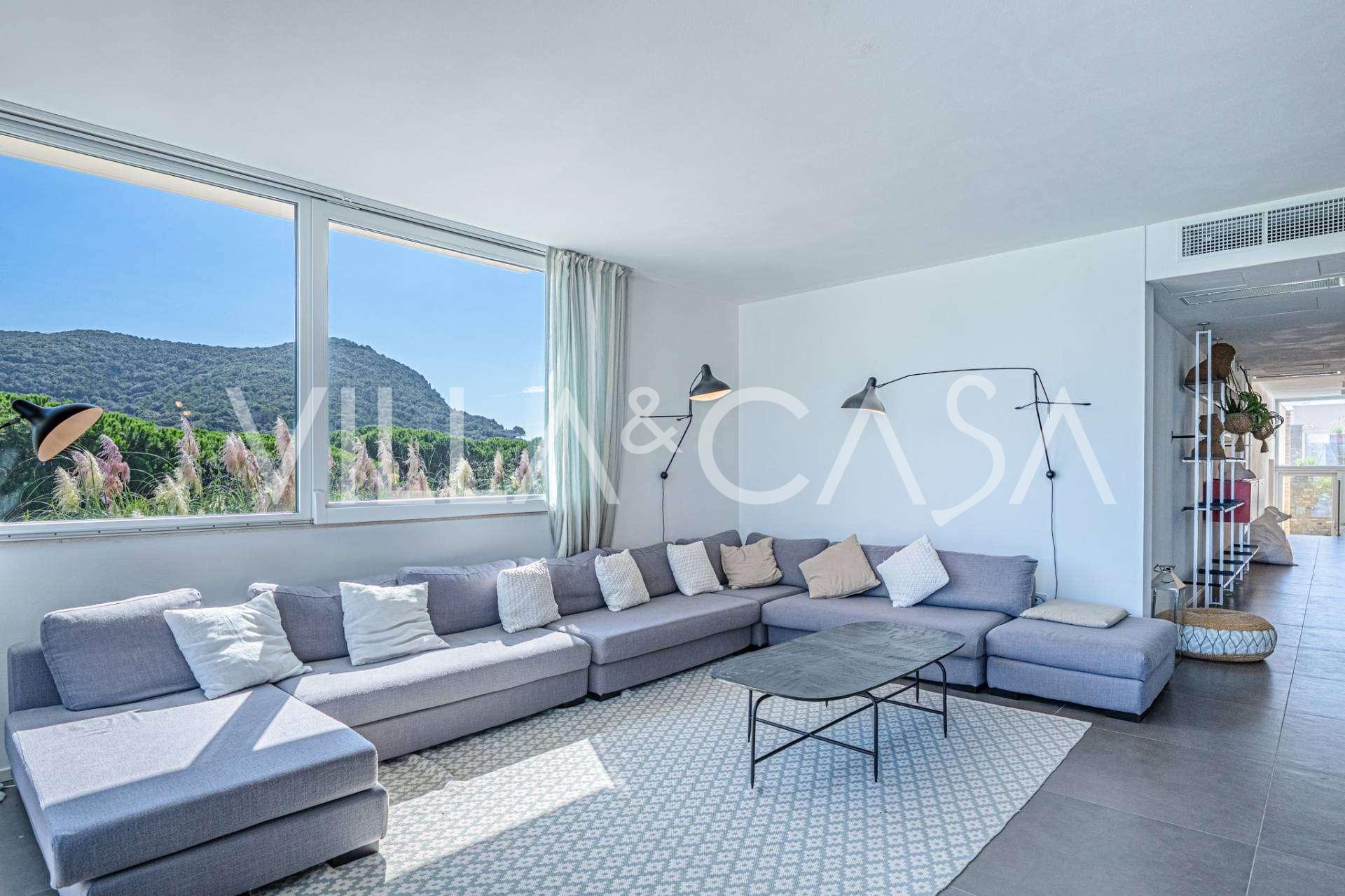 חזיתות האבן והטיח משתלבות בהרמוניה בנוף הים תיכוני. סלון מואר עם חלונות גדולים ותאורה טבעית זורם באופן חלק למטבח-חדר אוכל עם נוף לחצר הפנימית. אזור השינה כולל ארבעה חדרי שינה זוגיים וחדר שינה יחיד, כל אחד עם חדר רחצה פרטי.