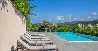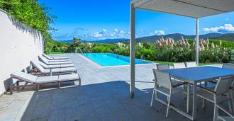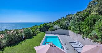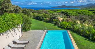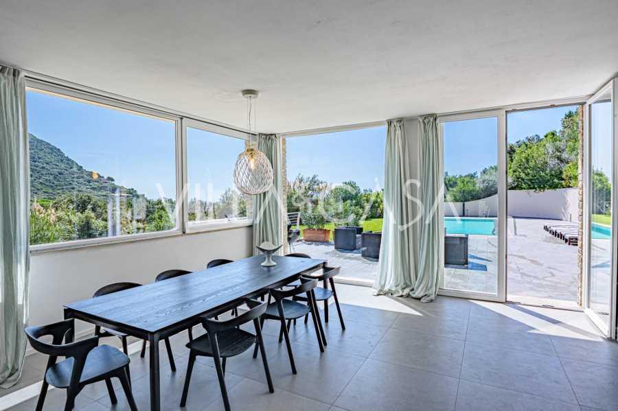 הבריכה, מוקפת באזור שיזוף עם מיטות שיזוף וריהוט מעוצב, מהווה את מרכז השטחים הפתוחים: מקום אידיאלי למנוחה עם נוף מרהיב למפרץ.