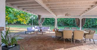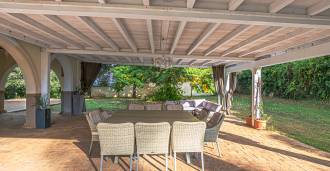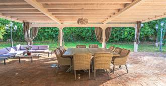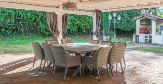 המרחב החיצוני של הווילה הוא יצירת אמנות תחת כיפת השמיים. שתי מרפסות פנורמיות נפתחות לנופים מרהיבים של הנופים של אגְרוֹ-רומנו. במרכז הגן ממוקמת בריכת מעצבים עם פסיפס כחול, מוקפת בפרחים ריחניים וצמחייה, זהו מקום שבו המותרות נפגשות עם הטבע. אליו מובילות מדרגות אבן רומנטיות היורדות ממגדל עתיק מכוסה קיסוס ירוק. גזיבו אלגנטי עם אזור לארוחות באוויר הפתוח, בר ליד הבריכה ואזור ברביקיו הופכים את הווילה למקום אידיאלי לאירועים, חגיגות ומנוחה פרטית.