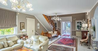 הווילה מתנשאת לגובה ארבע קומות, ומרשימה בארכיטקטורה המתוכננת שלה ובעיצוב הפנים האלגנטי. חצר כניסה מרשימה עם מדרגות סימטריות מובילה לכניסה הראשית, ופותחת מרחב שבו כל פרט נוצר לנוחות והנאה. בקומה הראשונה, אזור קבלת פנים מפואר מקבל את פני האורחים באווירה של ארמון פרטי: סלון מרווח עם אח, משרד מעודן וחדר שינה אורחים אלגנטי עם חדר רחצה יוצרים הרמוניה של נוחות ואצילות.